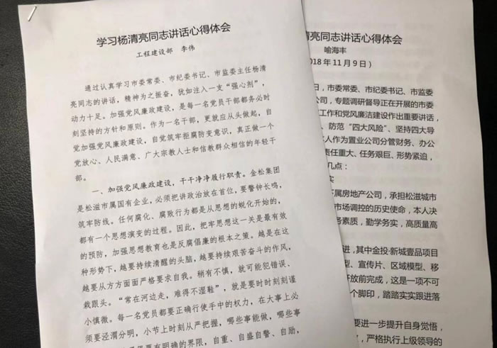 10月30日,市委常委、市紀委書(shū)記、市監委主任楊清亮同志到集團公司,專(zhuān)題調研督導正在開(kāi)展的市委巡察工作,并就抓好巡察工作和黨風(fēng)廉潔建設作出重要講話(huà)。會(huì )后,集團各部室、子公司紛紛召開(kāi)專(zhuān)題會(huì )議、撰寫(xiě)心得體會(huì ),學(xué)習落實(shí)市委常委、市紀委書(shū)記在金松集團巡察工作調研督導會(huì )上的講話(huà)精神。
