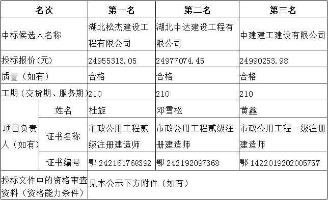 松江花園安置小區(三期)及配套基礎設施建設項目室外工程評標結果公示(標段編號HBSZ-202201SZ-002001001)