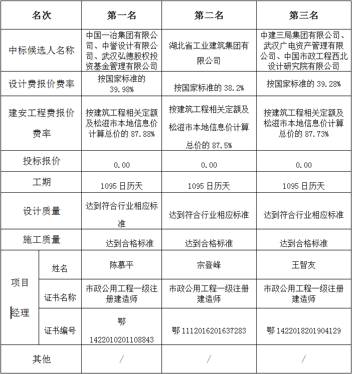 本項目于2023年05月28日在湖北省電子招投標交易平臺發(fā)布招標公告,2023年07月03日在松滋市開(kāi)標室(1)開(kāi)標,并于2023年07月03日完成評標工作。根據評標委員會(huì )提交的報告,松滋金松工業(yè)投資開(kāi)發(fā)有限公司已經(jīng)確認評標結果,現進(jìn)行評標結果公示。