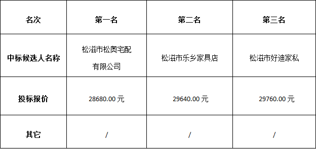 金投物業(yè)員辦公家具采購項目于2018年12月10日發(fā)布詢(xún)價(jià)邀請函,2018年12月13日在松滋市稻谷溪城市濕地公園會(huì )議室進(jìn)行評標。根據評標小組提交的評標結論,湖北金投物業(yè)管理有限公司已經(jīng)確認評標結果,現進(jìn)行中標候選人公示。