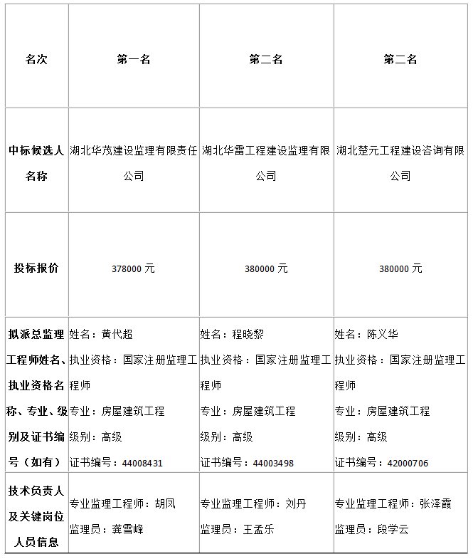二、中標候選人情況