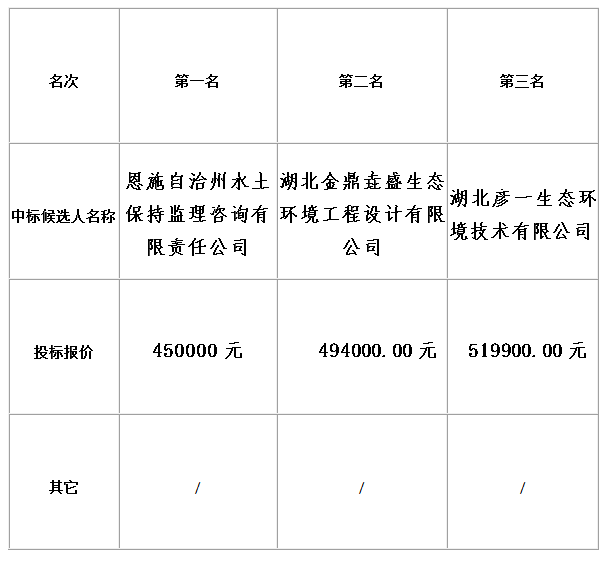 尚含綠城等項目進(jìn)行水土保持方案編制等服務(wù)采購項目于2020年1月15日發(fā)布詢(xún)價(jià)邀請函,2020年1月20日在金松集團開(kāi)評標室開(kāi)標。根據評標小組提交的評標結論,實(shí)施單位已經(jīng)確認開(kāi)標結果,現進(jìn)行中標候選人公示。