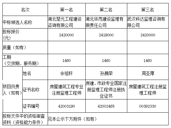 松江花園安置小區(三期)及配套基礎設施建設項目監理松江花園安置小區(三期)及配套基礎設施建設項目監理于2020年08月25日在湖北省電子招投標交易平臺發(fā)布招標公告,2020年09月16日在松滋市開(kāi)標室(1)開(kāi)標,并于2020年09月16日完成評標工作。根據評標委員會(huì )提交的評標報告,湖北松滋金投置業(yè)有限公司已經(jīng)確認評標結果,現進(jìn)行評標結果公示。